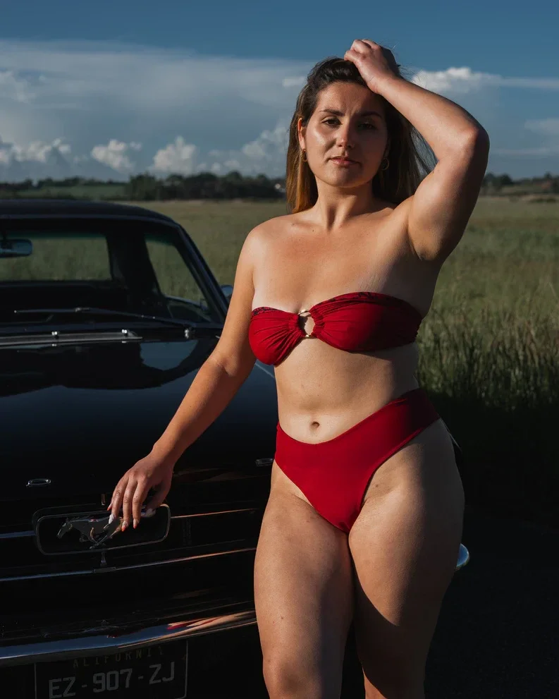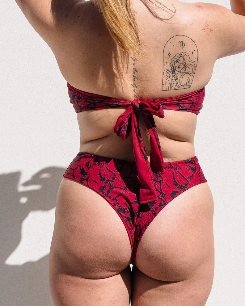 Réversible d’un côté papillon, de l'autre rouge cerise.